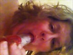 Bbw goes all out on dildo
